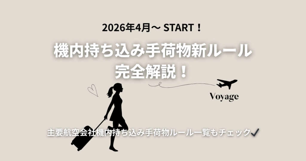 2026年4月1日から機内持ち込み手荷物の新ルールがスタート。身の回り品のサイズ基準や注意点をわかりやすく解説し、ANA・JAL・Peach・ジェットスターなど主要航空会社の持ち込み条件も一覧で紹介します。 -