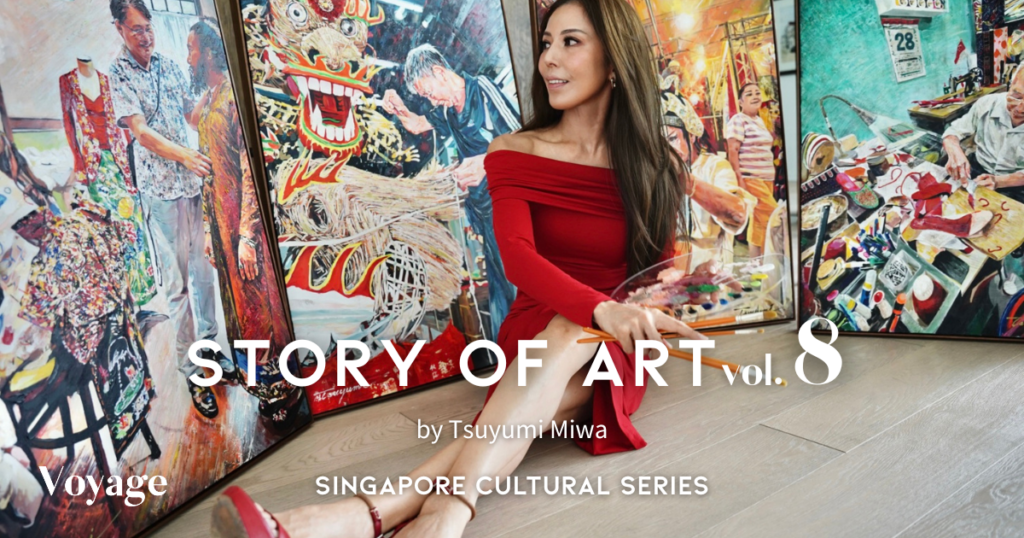 「Story of Art」では、アーティストの三輪つゆ美さんが近年発表した「Singapore Cultural Series」において、シンガポールの多文化社会を支える無数の”日常のヒーロー”たちのアートをご紹介。第8回は100年続く南洋茶舗「Pek Sin Choon」の静かな時間に迫ります。 -