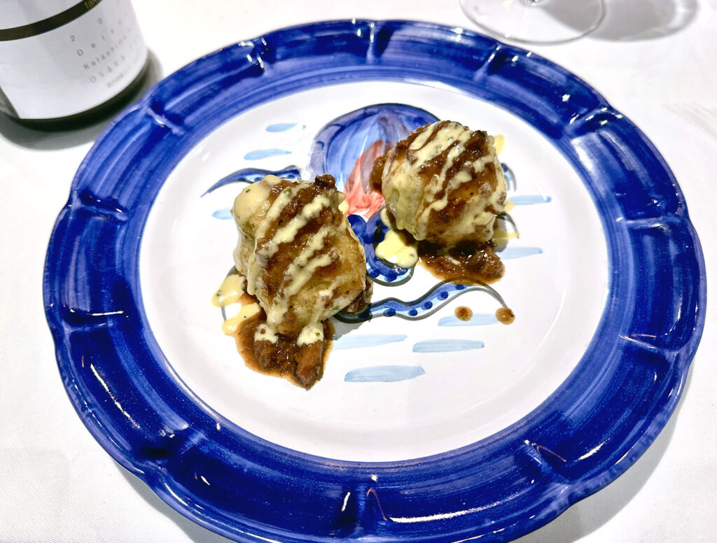 大阪ヘルスケアパビリオンでは、西出シェフが「ゼッポリーニ・アッラ・オオサカーノ」を提供。ナポリの“ゼッポリーネ”と大阪のたこ焼き文化を掛け合わせ、海外来場者の記憶にも残る“遊び心の一皿”に。