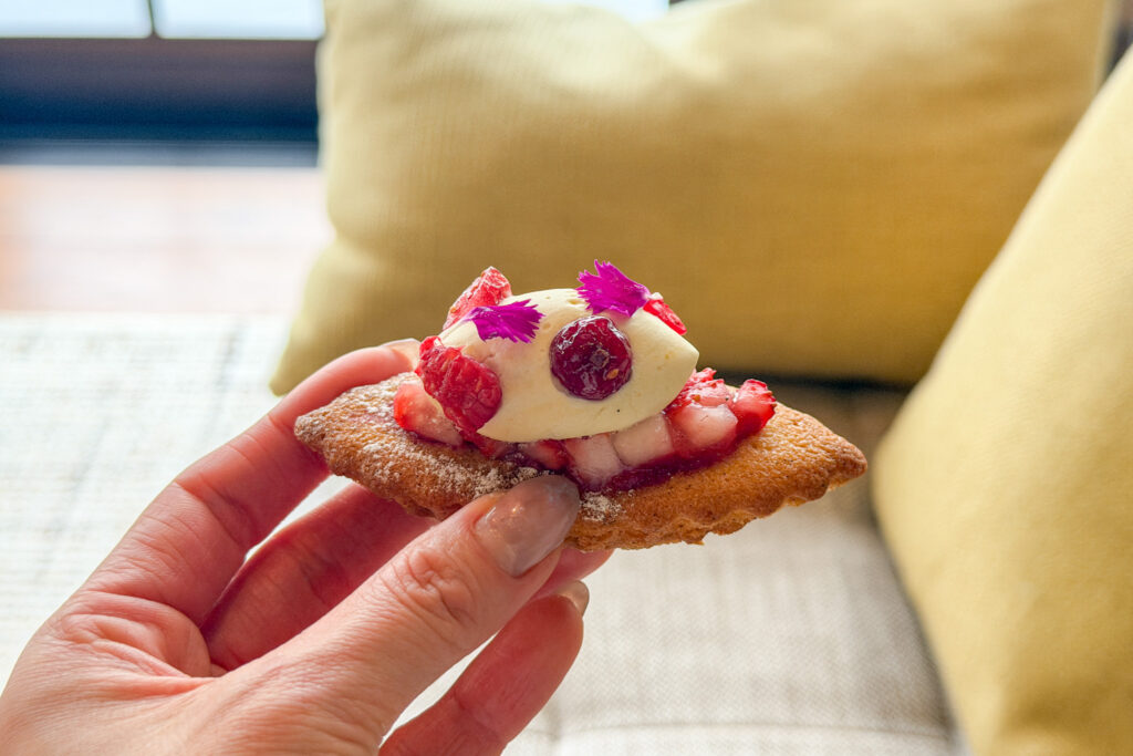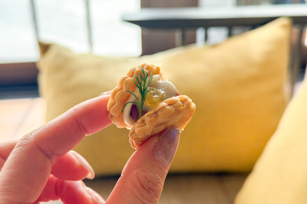 一般的にアフタヌーンティーといえばスイーツが主役かもしれませんが、「P72」のアフタヌーンティーはセイヴォリーも主役級でした。どれも冬の恵みをふんだんに味わえるだけではなく、心と体が喜ぶような、重さを感じさせない構成。