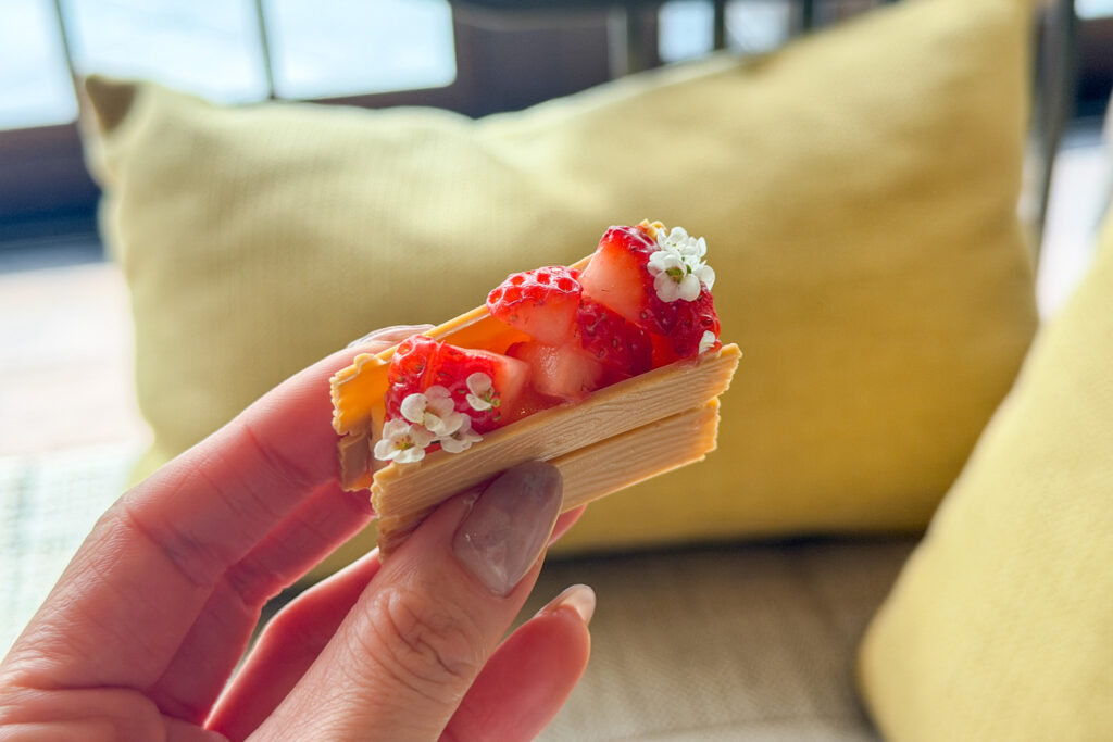 ホテルのシグネチャーレストラン「P72」では、旬のいちごを主役に冬野菜をふんだんに取り入れ、「パティーナ大阪」ならではのサステナブルな取り組みも体現したアフタヌーンティーを楽しめます。