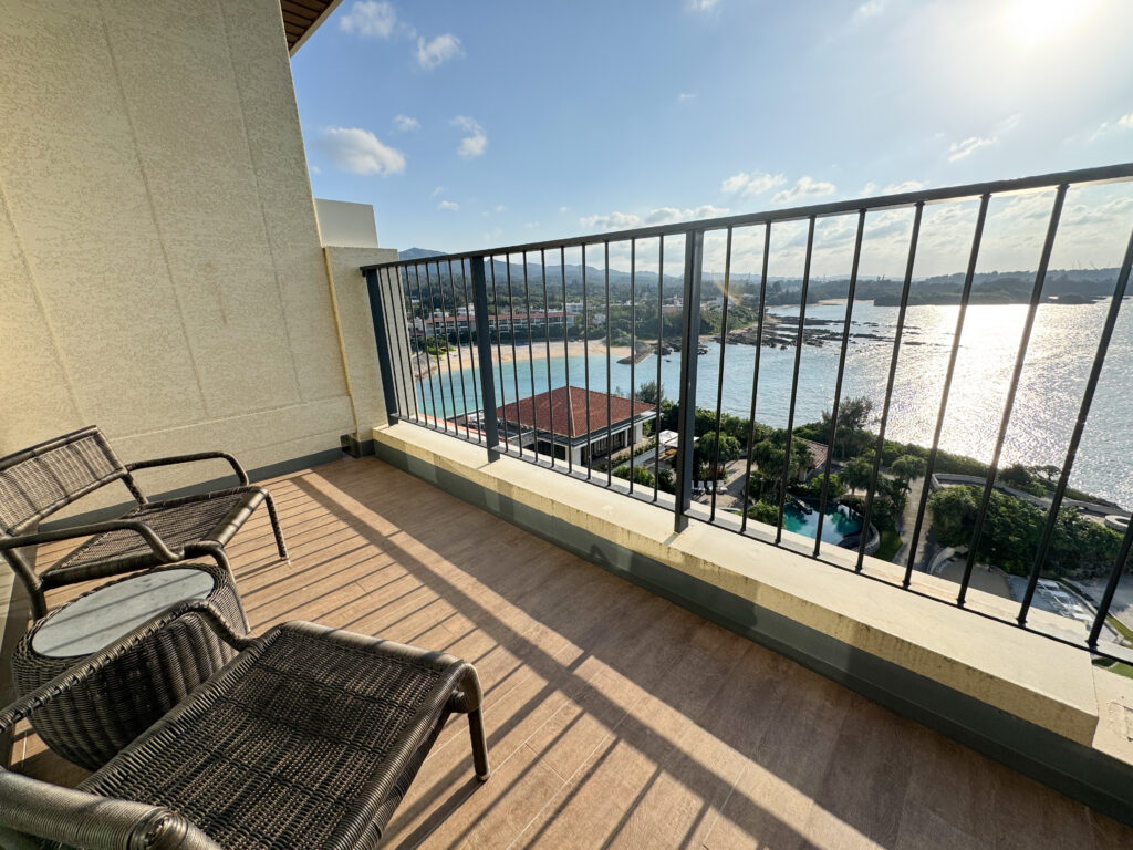 滞在した「ラグーンビュー ツイン(38平米)」は、万座毛方向の西海岸に広がる珊瑚礁の浅瀬を臨むことができる部屋。