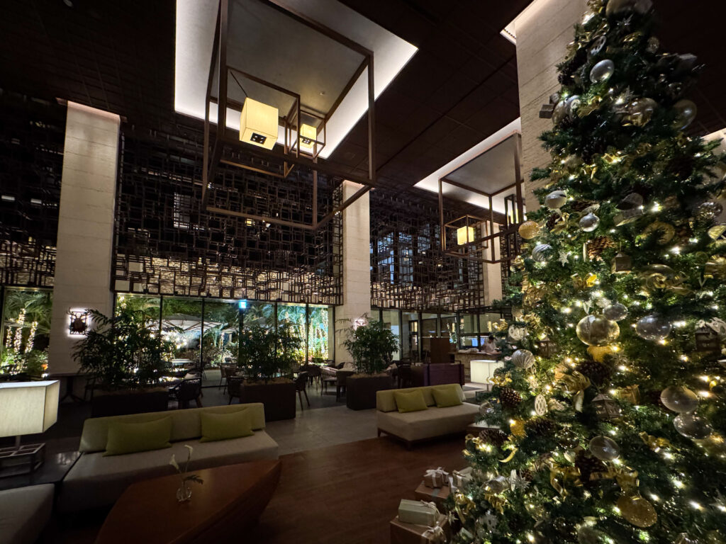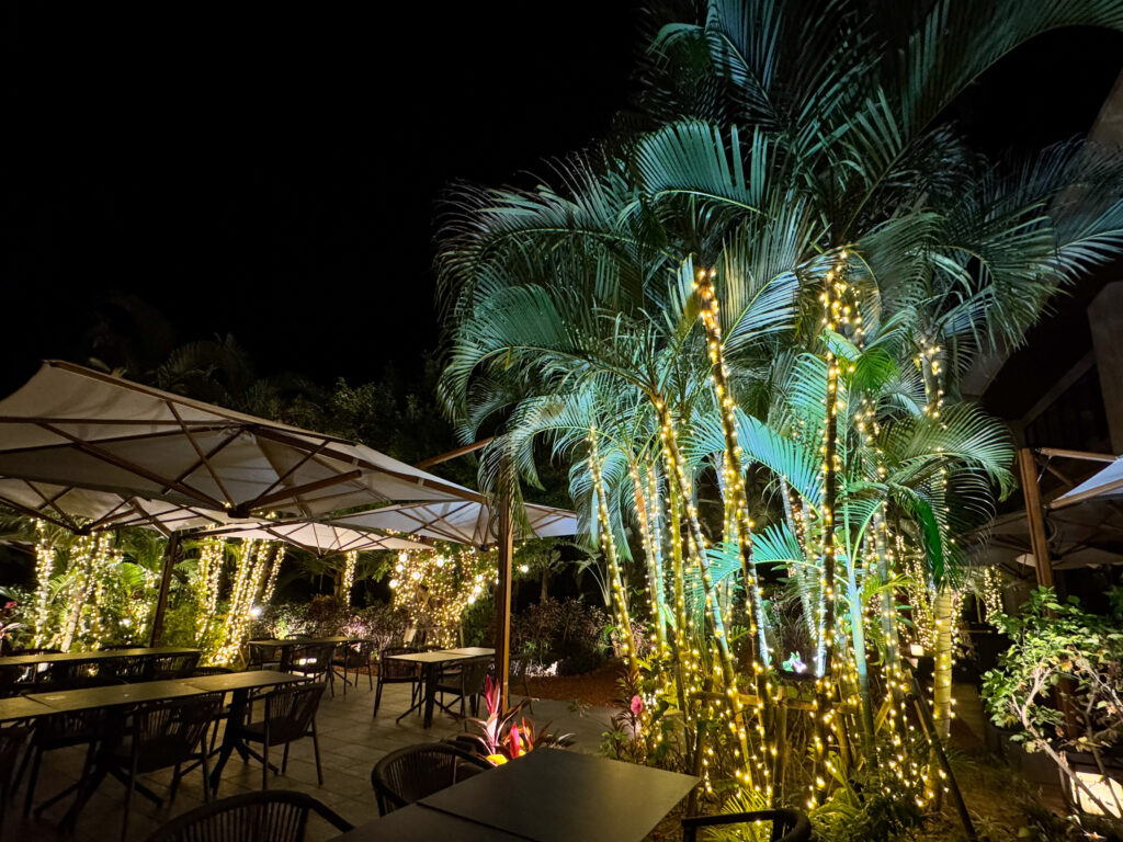 訪れた日程は12月のホリデーシーズン前だったので、夜の雰囲気の煌びやかさも印象的。ヤシの木もデコレーションされ、南国のクリスマスを満喫するのに相応しい空間です。