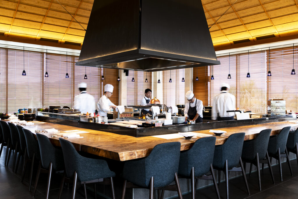 「シラカチ」内は、日本料理、鮨、鉄板焼、炉端の4スタイルのスペシャリティレストランに区切られているのが特徴。