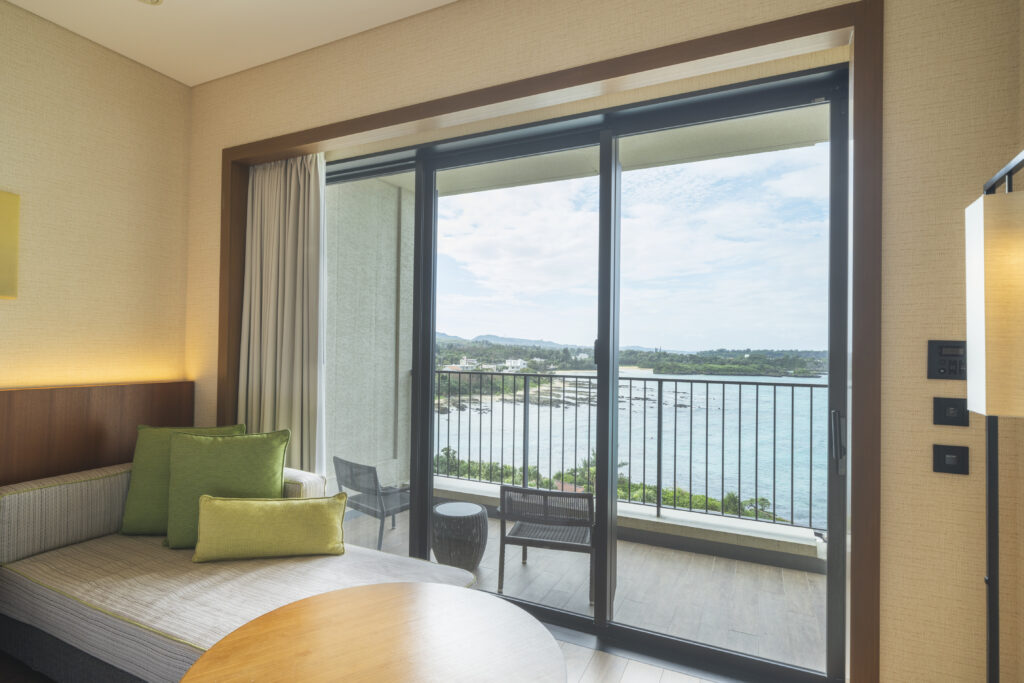 万座毛の絶景が広がる、モダンで居心地の良い客室