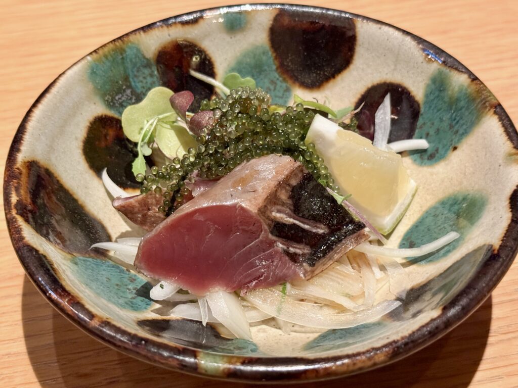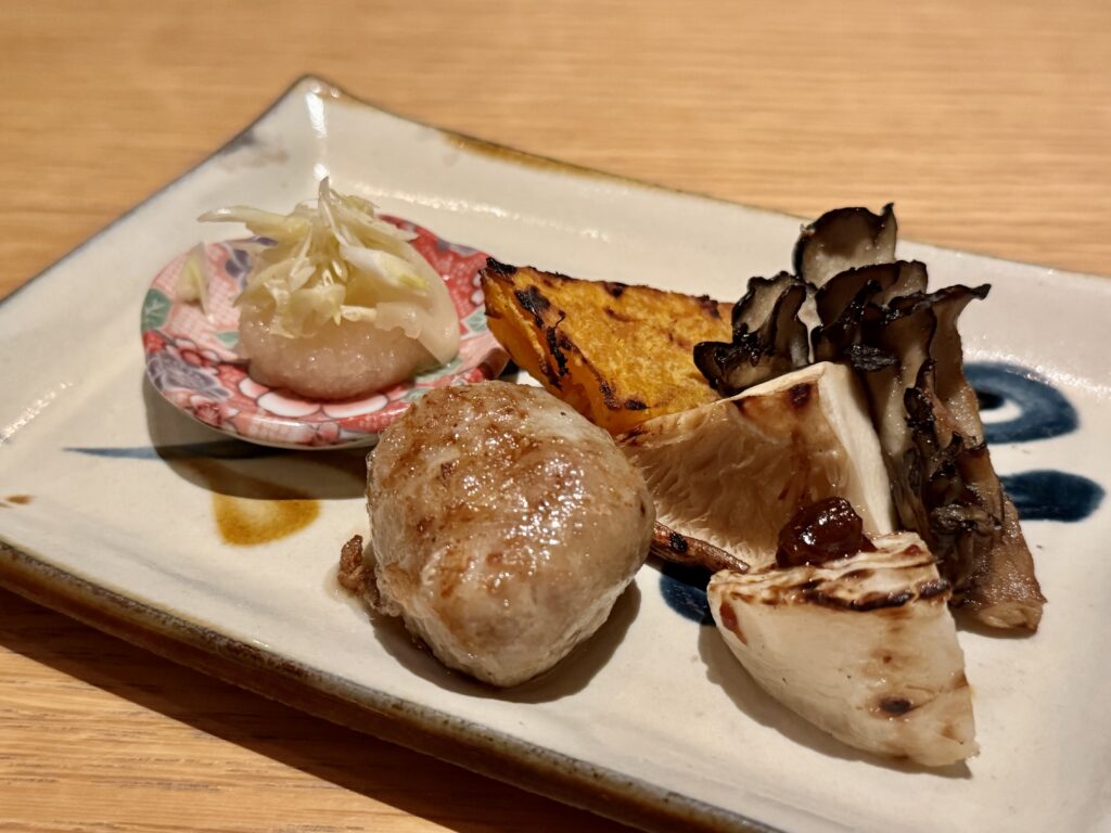 この日のディナーは、最も奥の海側に位置する和食レストラン「シラカチ 炉端」でシグニチャーの「炉端コース」を堪能しました。明確な仕切りや境目が少ない店内では、まるで旅の途中で路地を歩きながら様々な発見をするかのように、それぞれの店舗が食との出会いを提供します。